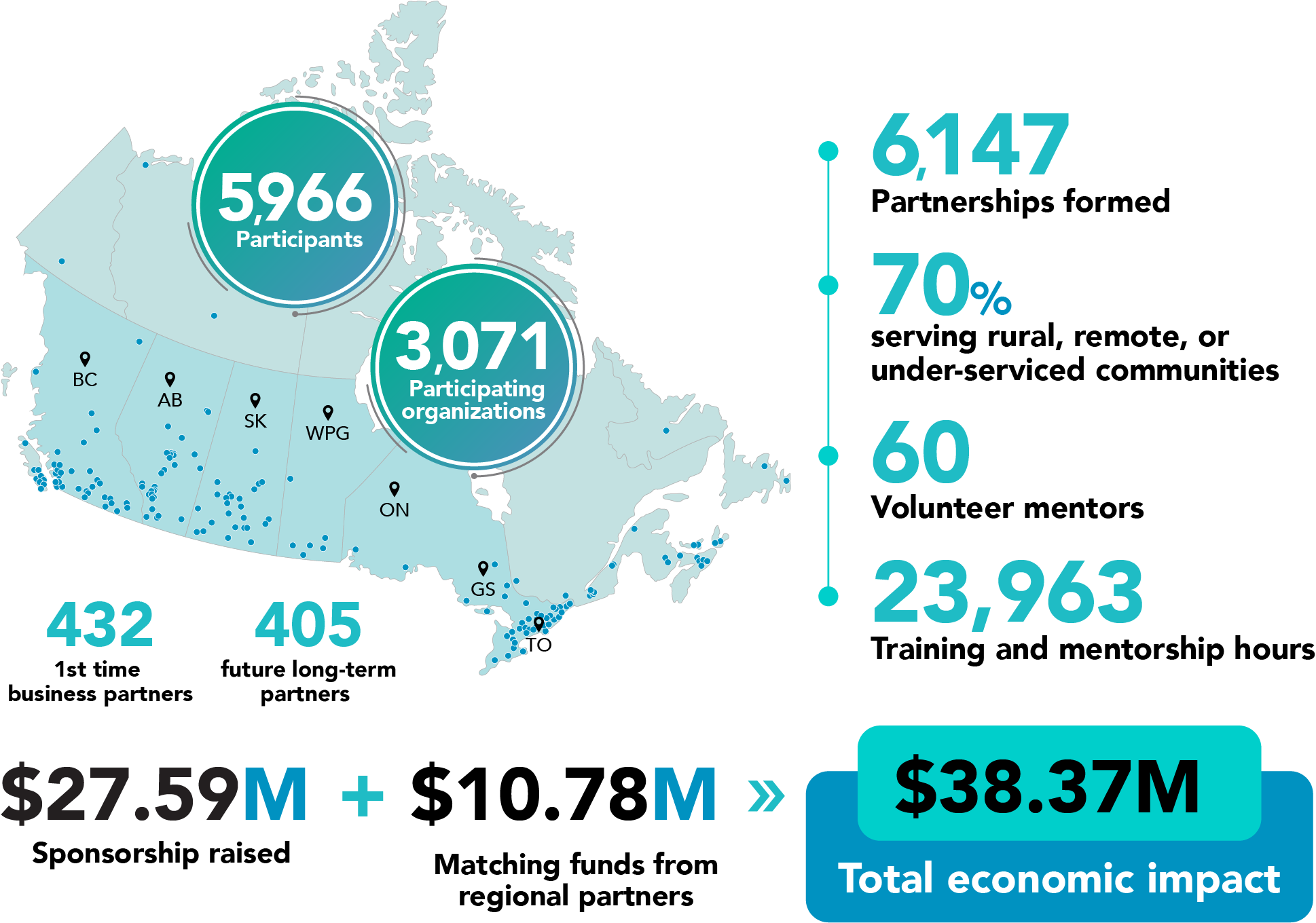 Since the program’s inception, a total of 6,403 new partnerships have been formed with businesses, raising over $28.25M in new private sector investment.