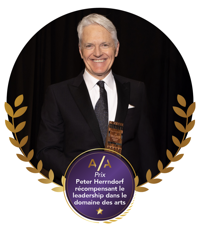Lauréat du Prix Peter Herrndorf récompensant le leadership dans le domaine des arts pour sa carrière exceptionnelle de 44 ans de faire rayonner des voix canadiennes, d’embrasser des œuvres artistiques audacieuses, de mobiliser de nouveaux publics et de refléter la diversité, l’ambition et la créativité du Canada.